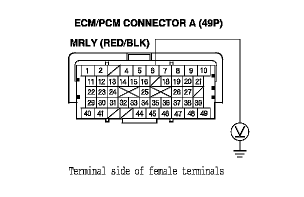 33. Check for continuity between ECM/PCM connector terminal A49 and body ground.