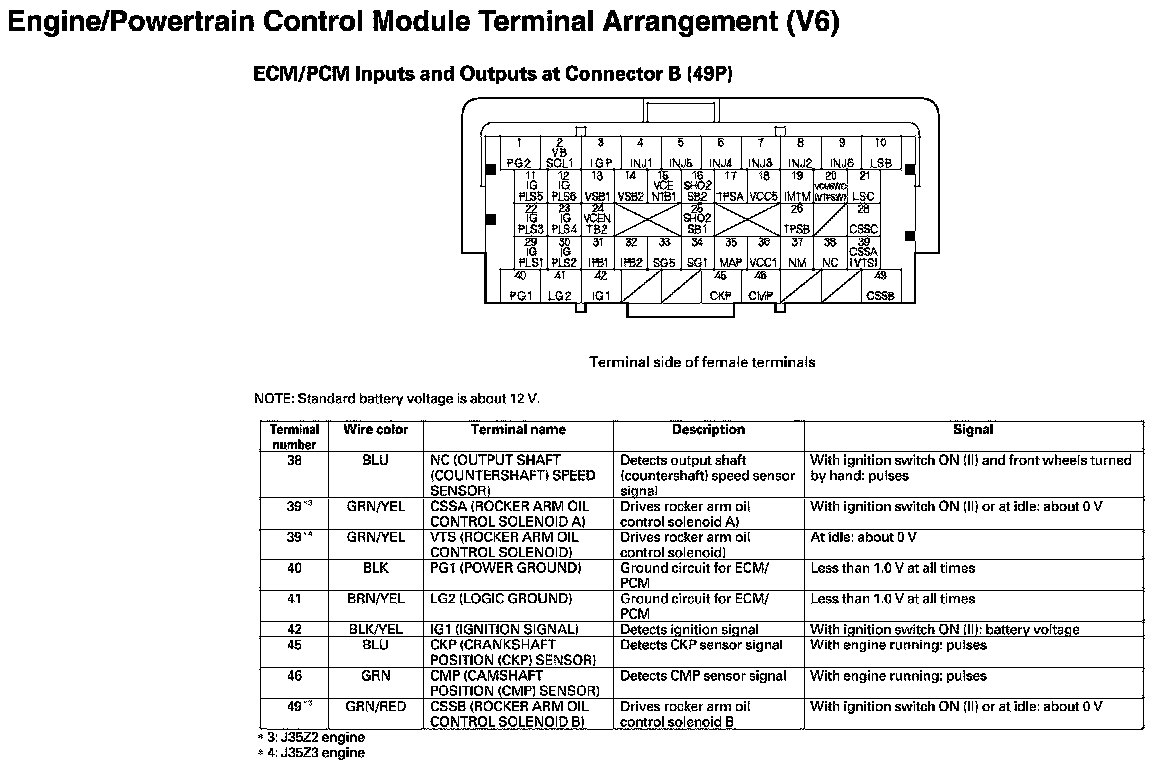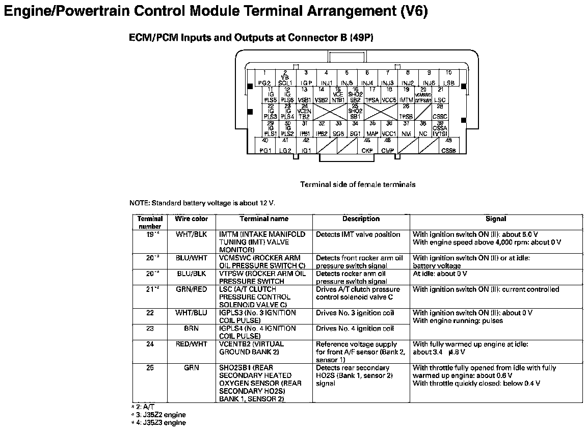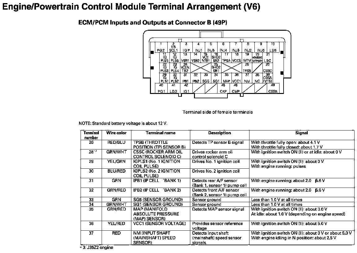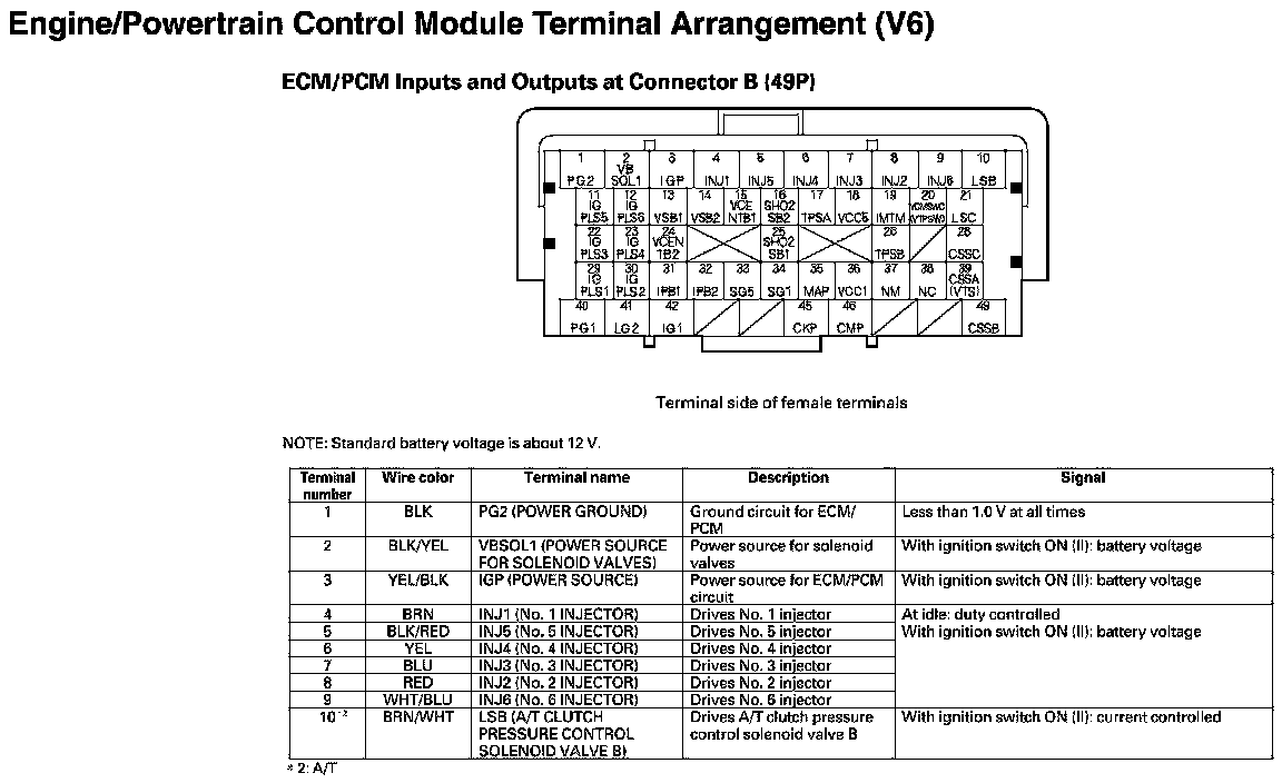 ECM/PCM Inputs And Outputs At Connector B