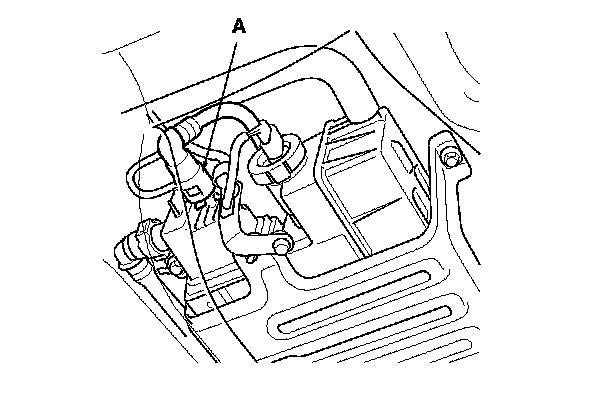 6. To prevent damage and keep foreign matter out, cover the disconnected connector and line ends with plastic bags (A).