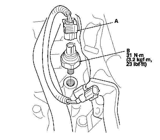4. Remove the knock sensor (B).