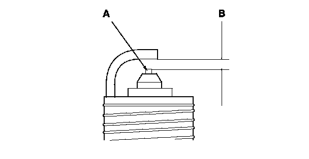 3. Replace the plug at the specified interval, or if the center electrode is rounded (A), or if the spark plug gap (B) is out of specification. Use only the spark plugs listed.