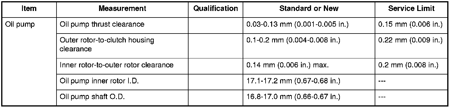 Oil Pump Specifications (M/T)