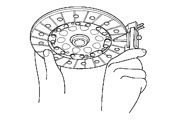 12. Inspect the lining of the clutch disc for signs of slippage or oil. If the clutch disc looks burnt or is oil soaked, replace the clutch disc and the pressure plate as a set. If the clutch disc is oil soaked, find and repair the source of the oil leak.