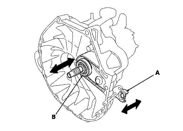 9. Move the release fork (A) right and left to make sure that it fits properly against the release bearing (B) and that the release bearing slides smoothly. Wipe off any excess grease.
