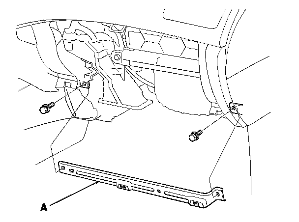 2. Cut the plastic cross brace (A) in the glove box opening with diagonal cutters in the area shown, and discard it.