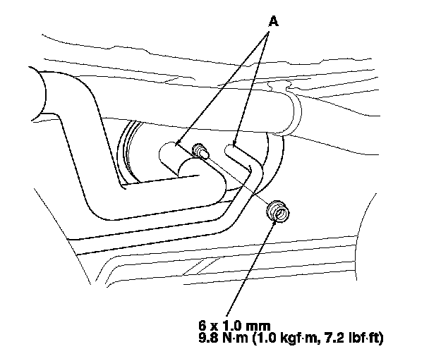 3. Remove the nut, then disconnect the A/C lines (A) from the evaporator core.
