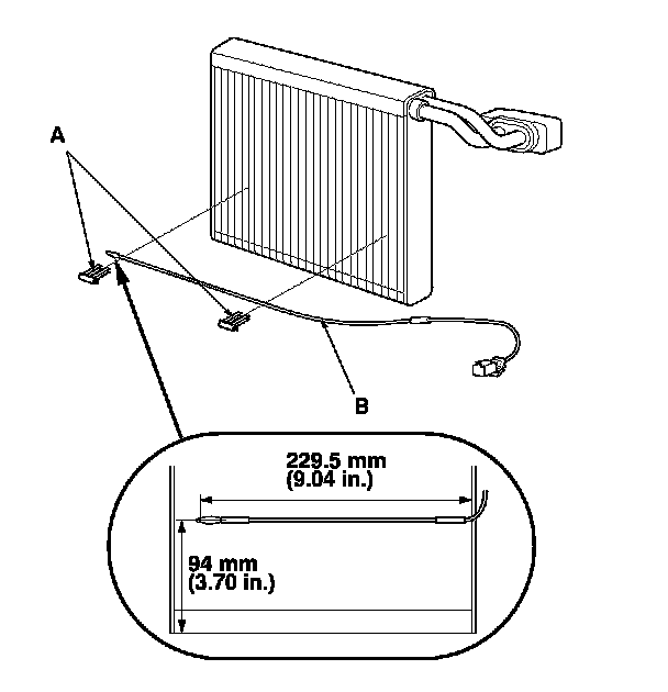 8. Remove the clips (A) and the evaporator temperature sensor (B).