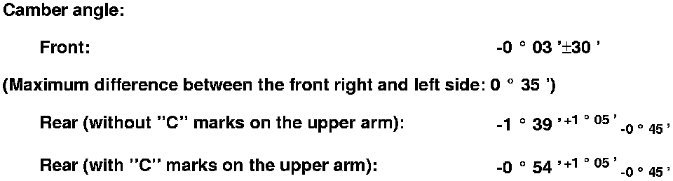 - If the measurement for the front camber is outside the specification, go to the front camber adjustment.