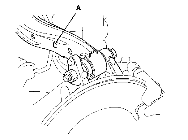 10. Replace the damper pinch bolts with the adjusting bolts (A), and adjust the camber angle.