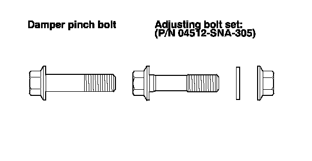 - The camber angle can be adjusted up to ±25 ' (center of tolerance) by replacing one damper pinch bolt with the adjusting bolt.