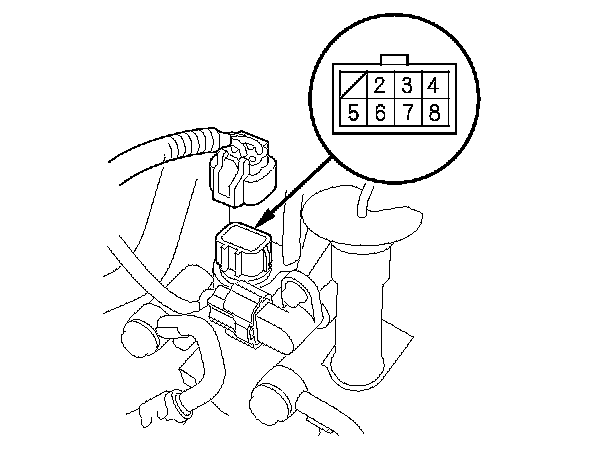 3. Measure the CVT start clutch pressure control valve solenoid resistance between solenoid harness connector terminals No. 4 and No. 8.