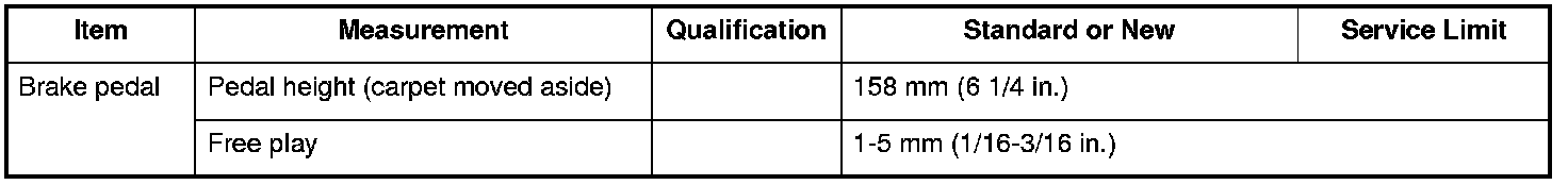 Brake pedal Specifications