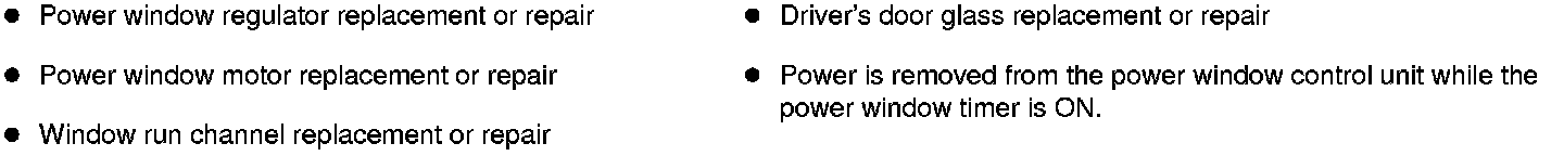 Resetting the driver's power window is required when any of the following have occurred: