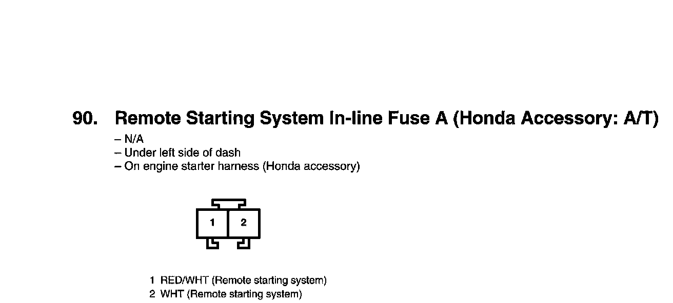 View 90 Remote Starting System In-Line Fuse A Connector View (Honda Accessory: A/T)