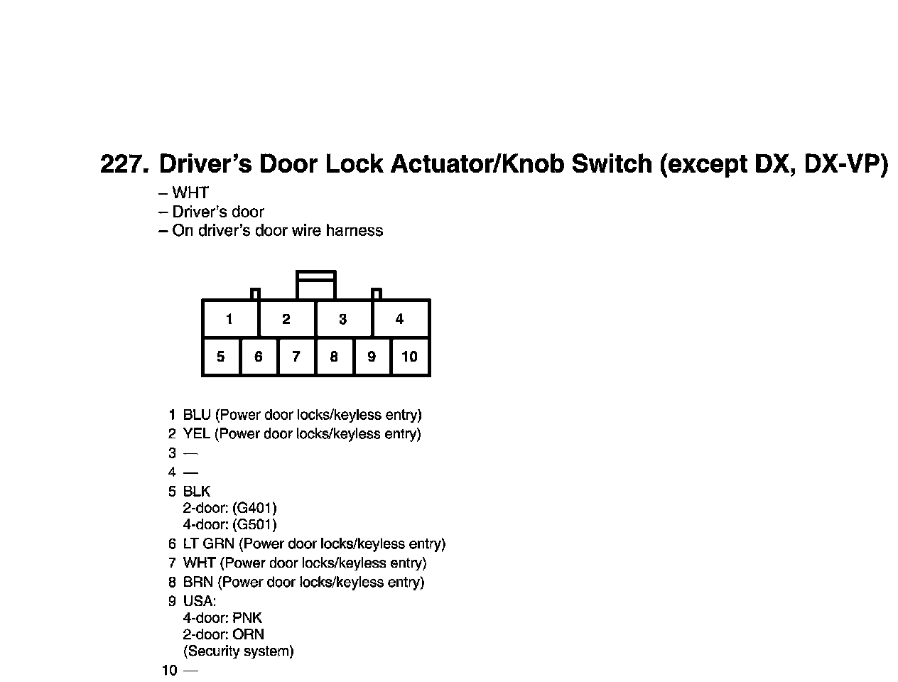 Driver's Door Lock Actuator/Knob Switch Connector View