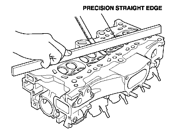 3. Check the cylinder head for warpage. Measure along the edges, and three ways across the center.