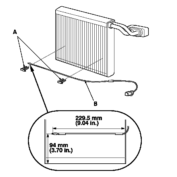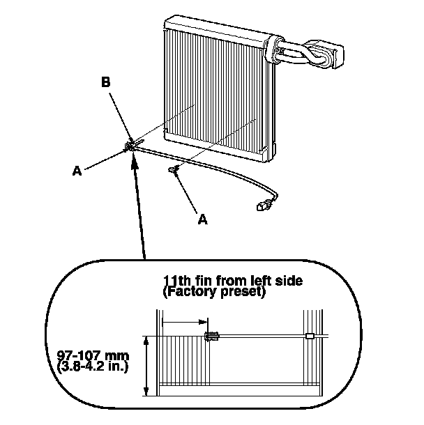 8. Remove the clips (A) and the evaporator temperature sensor (B).