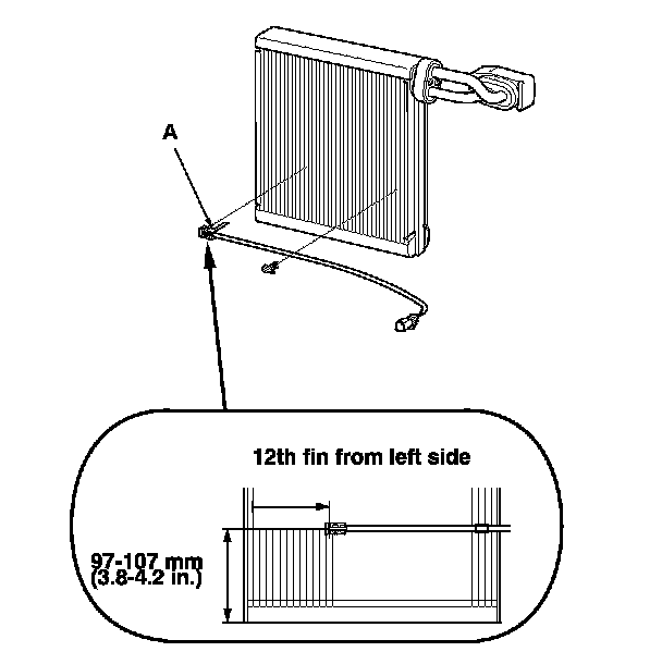 9. '07-09 2-door models: When installing the evaporator temperature sensor (A), set the evaporator temperature sensor in the right side fin from the previous position.