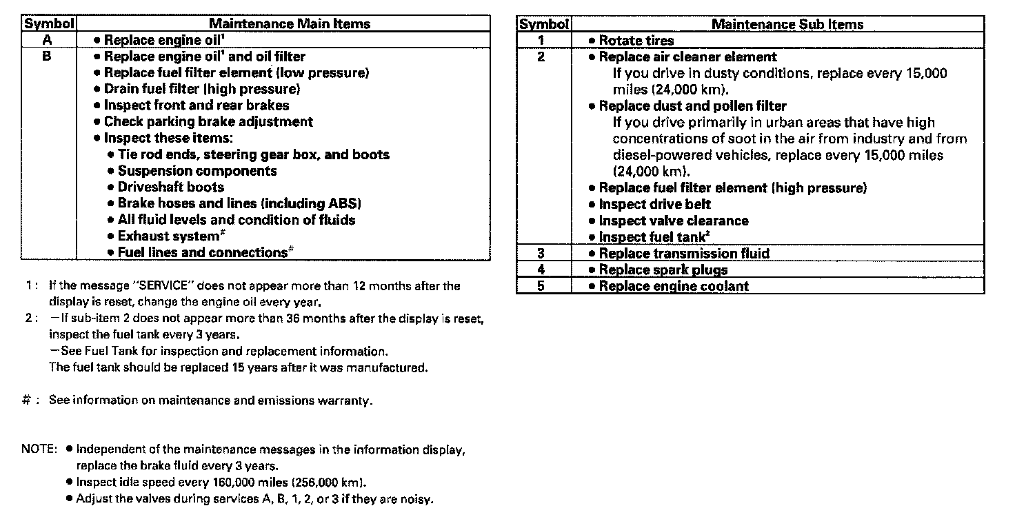 items displayed in the odometer/trip meter or the multi-information display are in code.