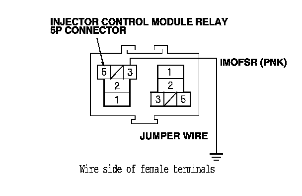 4. Connect injector control module relay 5P connector terminal No. 3 to body ground with a jumper wire.