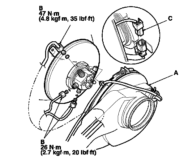4. Disconnect the FTP sensor connector (C) and the FTT sensor connector (D).
