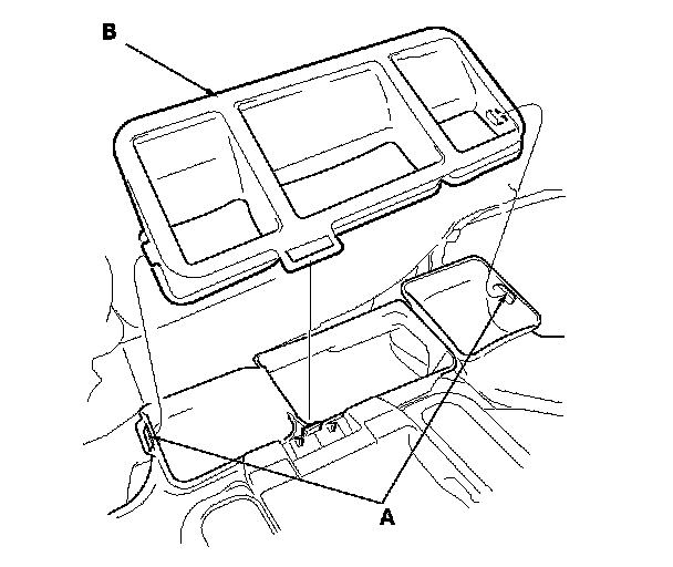 4. From the back of the dashboard, release the hooks (A), then remove the center joint duct (B).