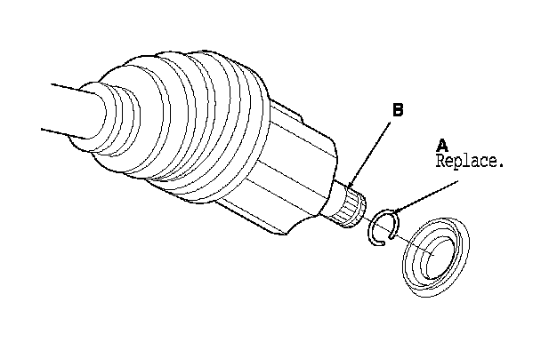 10. Install a new set ring (A) on both driveshafts (B).