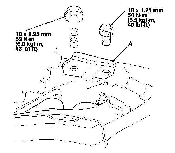 27. Install the gearbox stiffener (A) and the bolts, and tighten the bolts loosely.