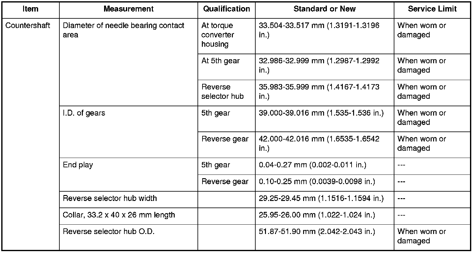 Countershaft Specifications