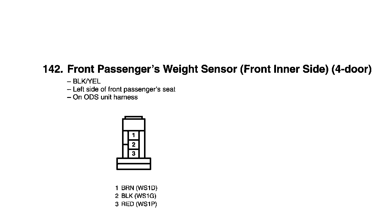 View 142 Front Passenger's (Front Inner Side) Weight Sensor Connector View (4-Door)