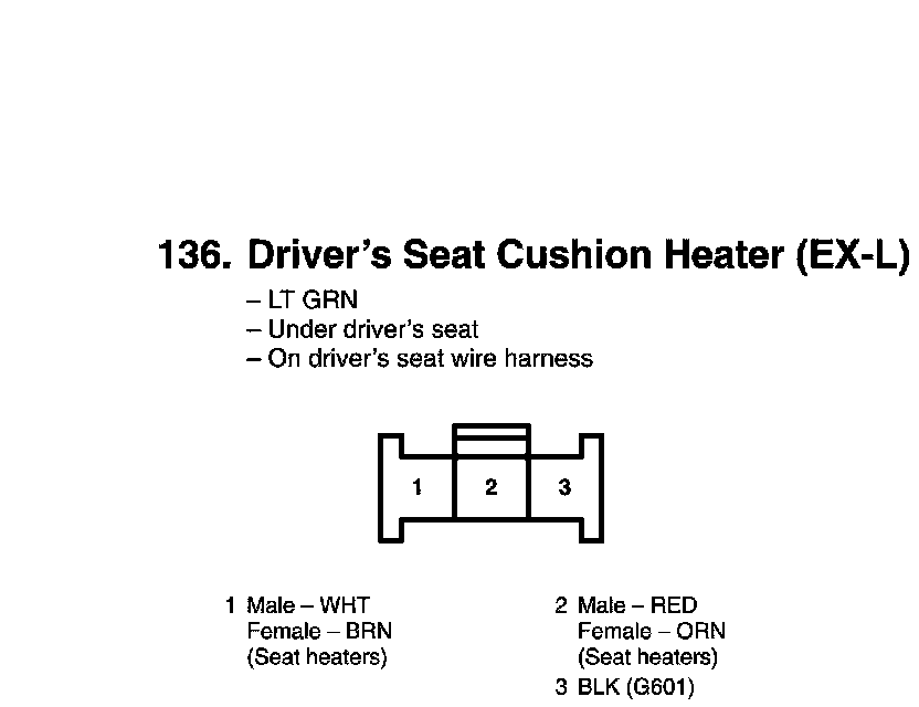 Driver's Seat Cushion Heater Connector View