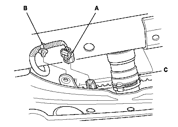 9. Disconnect the lower radiator hose (C) from the radiator.