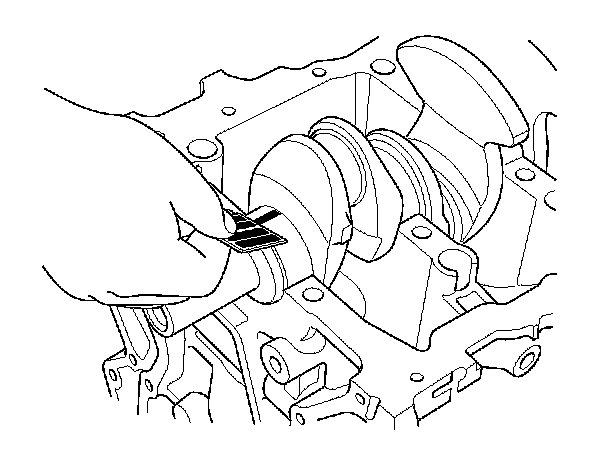 6. If the plastigage measures too wide or too narrow, remove the crankshaft, and remove the upper half of the bearing. Install a new, complete bearing with the appropriate color code(s), and recheck the clearance. Do not file, shim, or scrape the bearings or the caps to adjust clearance.
