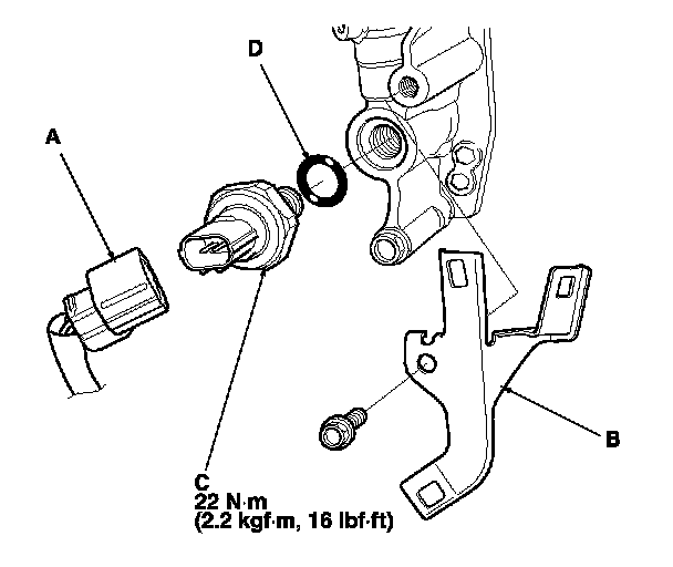 4. Install the parts in the reverse order of removal with a new O-ring (D).