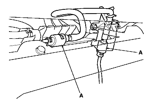 5. To prevent damage and keep foreign matter out, cover the disconnected connector and line ends with plastic bags (A).