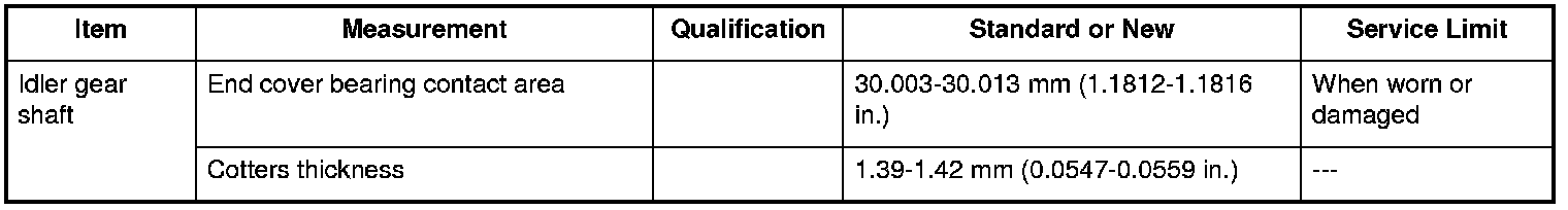 Idler Gear Shaft Specifications