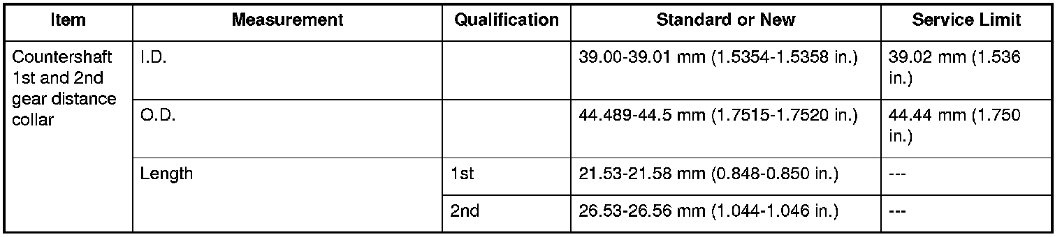 Countershaft 1st and 2nd Gear Distance Collar Specifications