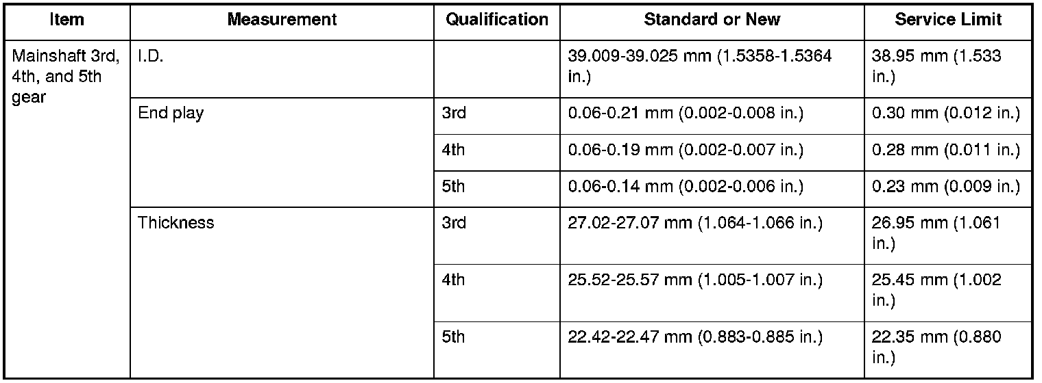 Mainshaft 3rd, 4th, and 5th gear Specifications
