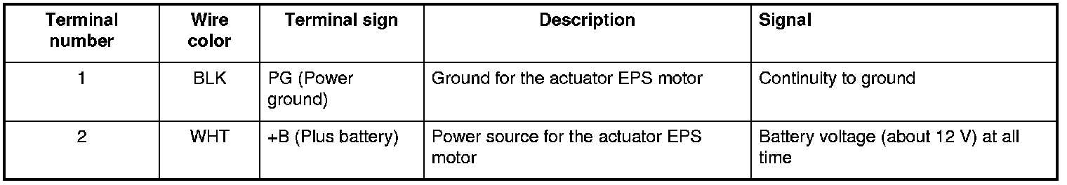 EPS Control Unit Inputs and Outputs for Connector A (2P) (connector disconnected)