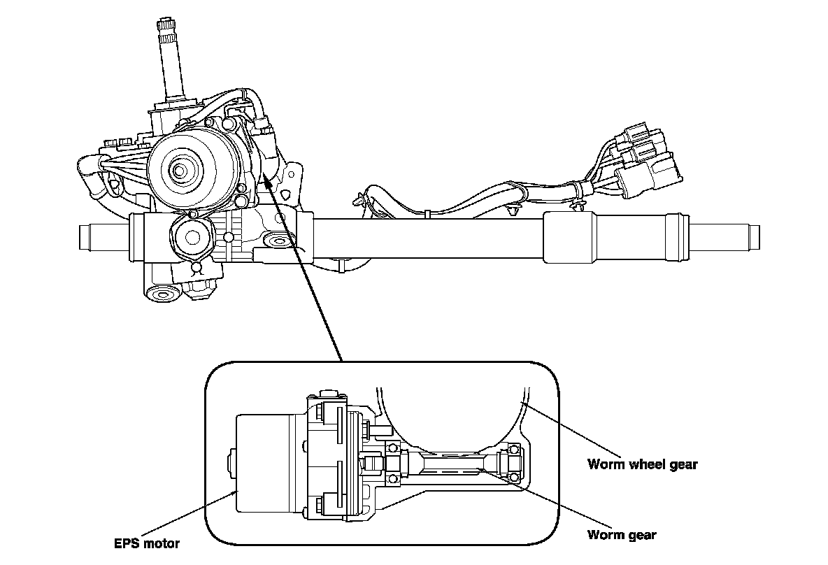 The EPS motor engages with a pinion and one worm wheel gear, which is transmitted to a direct pinion, move a rack.