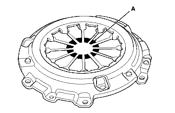 5. Inspect the fingers of the diaphragm spring (A) for wear at the release bearing contact area.
