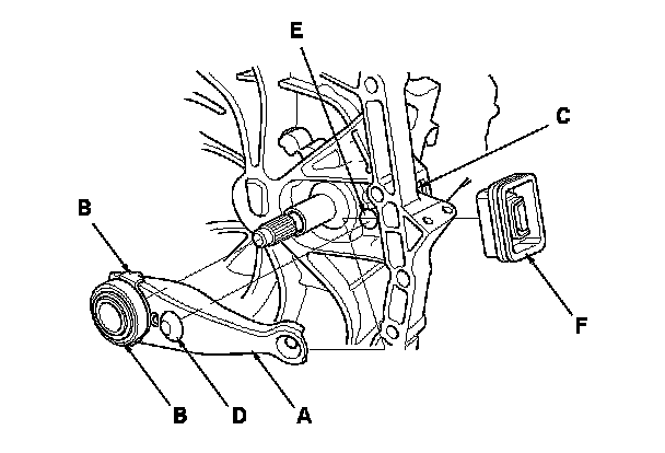 8. Install the release fork boot (F). Make sure the boot seals around the release fork and the clutch housing.