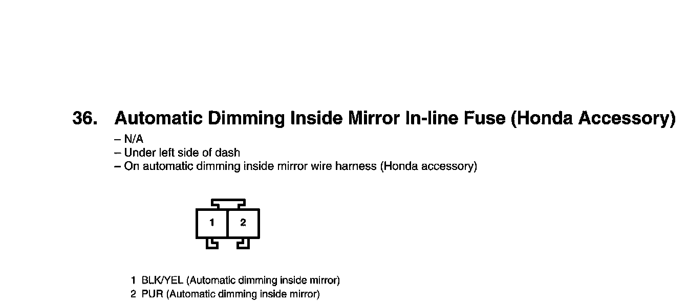 View 36 Automatic Dimming Inside Mirror In-Line Fuse Connector View (Honda Accessory)