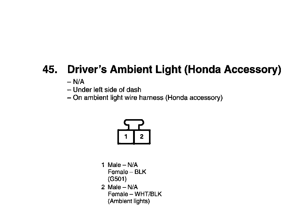 View 45 Driver's Ambient Light Connector View (Honda Accessory)