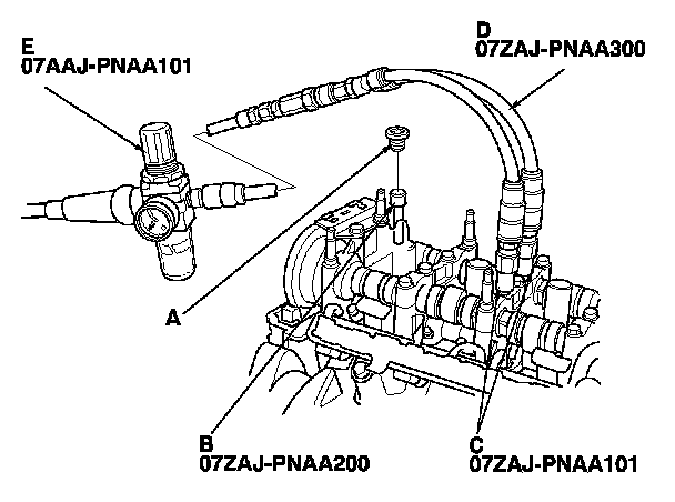 NOTE: If the rocker arm piston does not move after applying air pressure, move the rocker arm up and down manually by rotating the crankshaft clockwise.