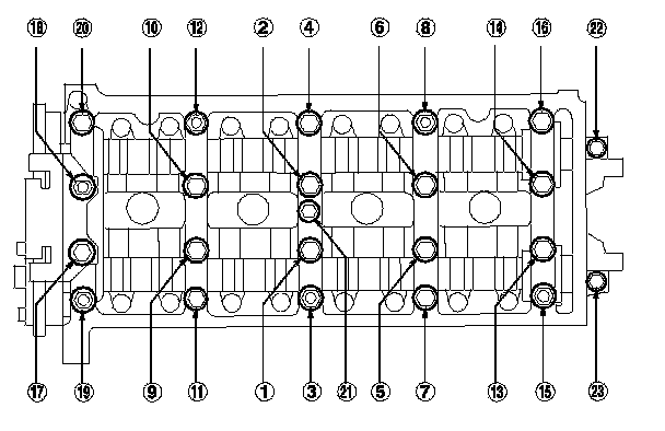 NOTE: If the engine does not have bolt 21, skip it and continue the torque sequence.