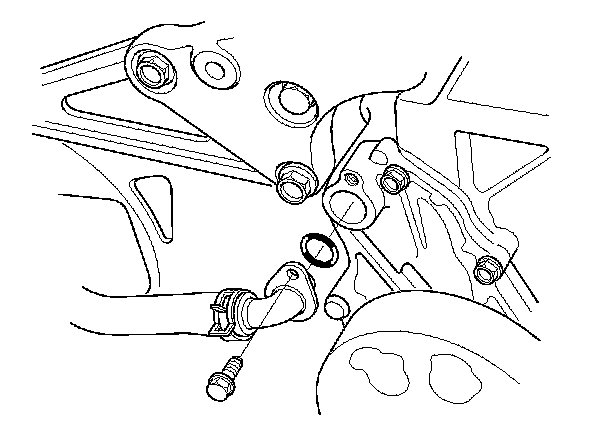 7. Remove the oil cooler hose joint pipe from the water pump.
