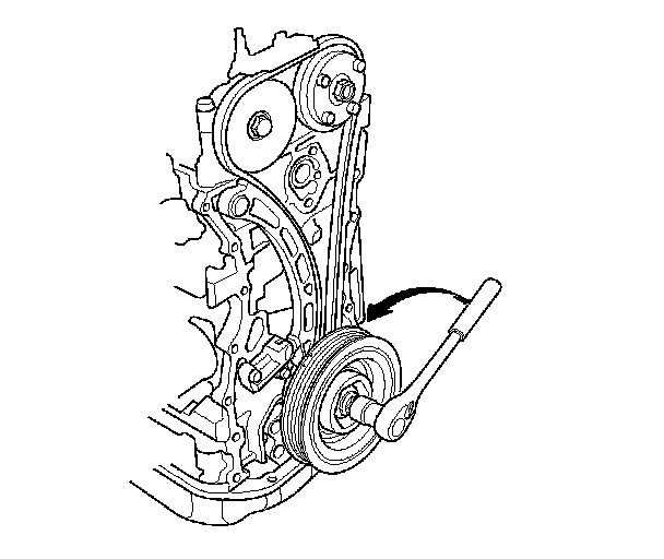 17. Turn the crankshaft counterclockwise to compress the auto-tensioner.