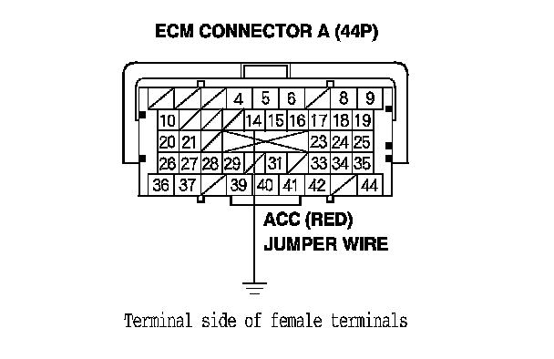 13. Momentarily connect ECM connector terminal A14 to body ground with a jumper wire several times.