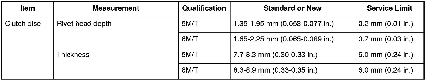 Clutch Disc Specifications (M/T)